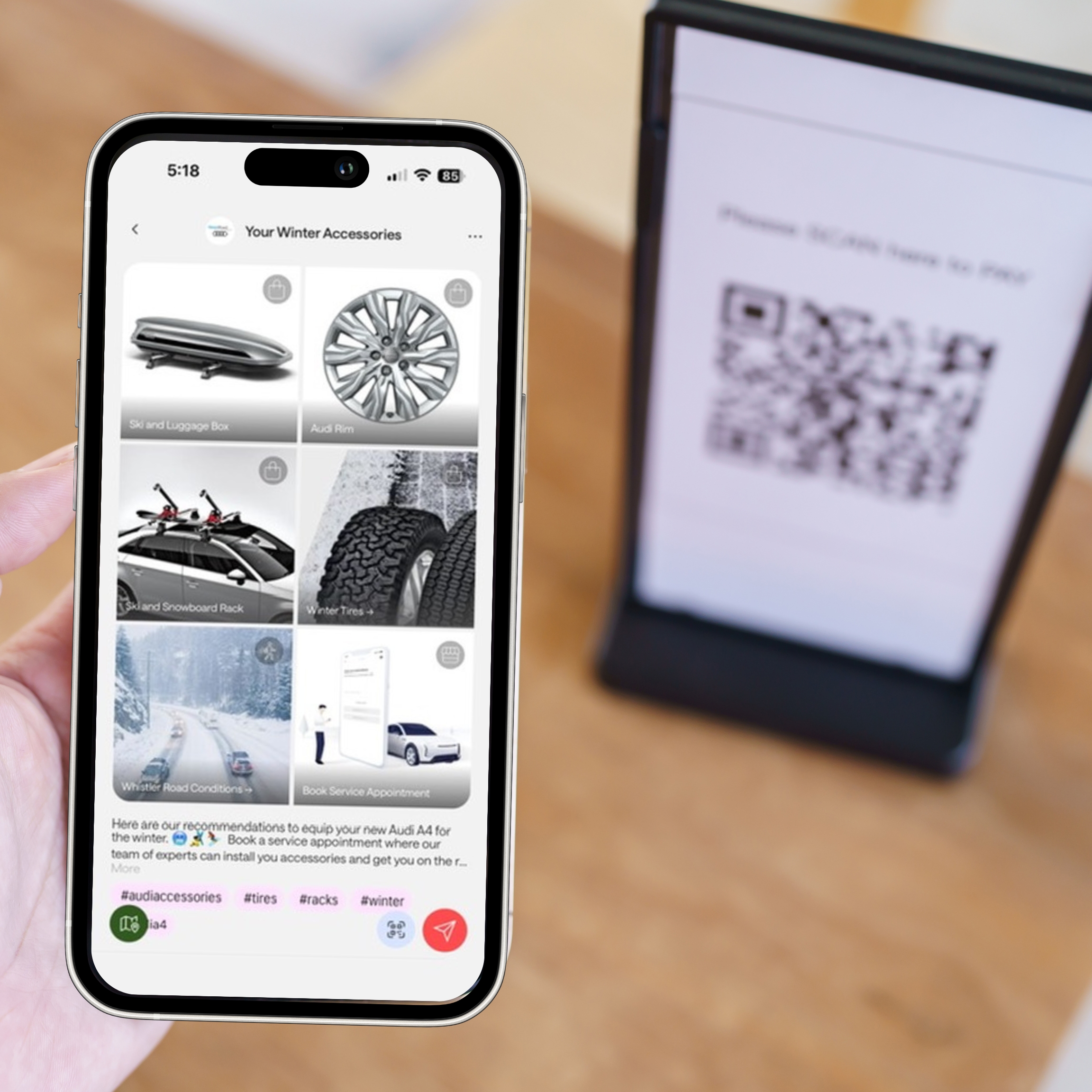 Share locally relevant information at/in your service location, via printed takeaways, or on digital signage using QR Codes. Include any educational or experience content and calls-to-action. Mobile-friendly visual collections drive engagement wherever you and your customers are.